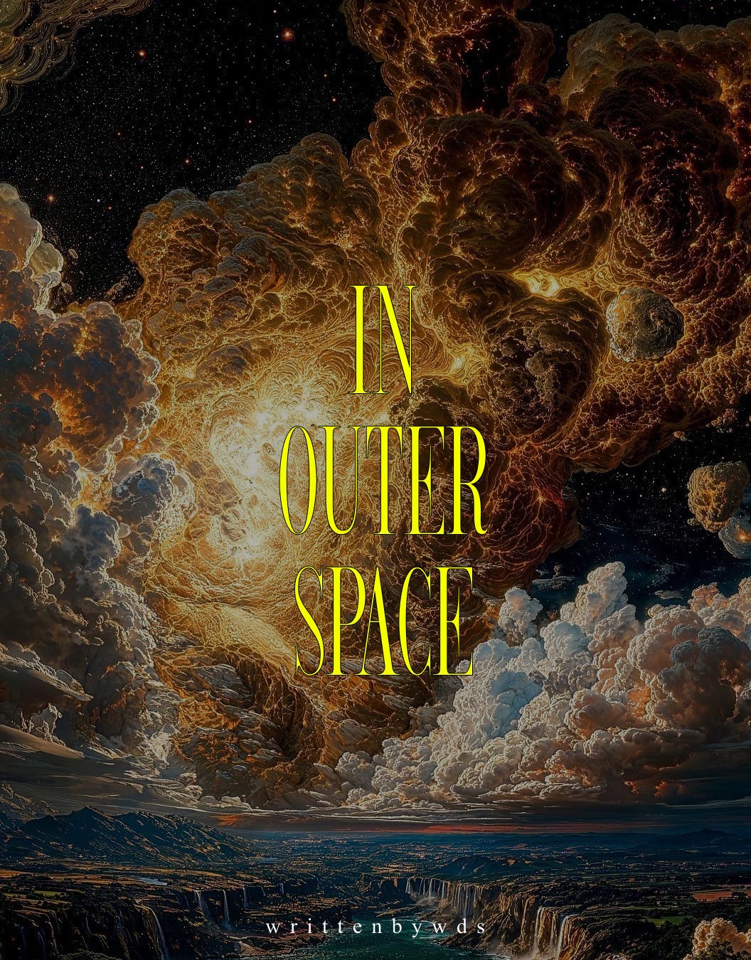 In outer space there's planets floating of different patterns and different sizes, and they all interact without touching, and they all interact without knowing each other. They push and pull, they communicate, they know the exactness of their neighbour, their lights and their shadows, their nights and their days. They form a net of connection from which no one can escape, and if you look closely, you'll notice that its strings move slightly, here and there, as if trembling, as if moved by a slight breeze, though you'll know there is no such thing as wind in outer space. Once you see it, you'll tune in, you'll keep quiet, and if you're lucky enough, you'll discover the reason for it, for there is a silent voice rising between the planets, a quiet singing, with no source or direction of going, but simply pervading everything, shaking it to the bone, making the net strings tremble to its melody, making the planets waltz to its purity. You've never heard anything like it before, so you're unlikely to recognize it with your human ears, — what is a human doing in outer space, anyway? — but that's the angels singing: their sweet voices enough to make sure that everything always moves the way it's supposed to and everything always falls into place where it's supposed to. And so the planets move and spin at exactly the right speed, and the stars burn at the exactly right intensity, and your life falls into place perfectly, and the oxygen gets to your lungs, and your lungs are able to make use of it, and the world keeps spinning, and it's always a new day, and the Sun is out, and you're alright.